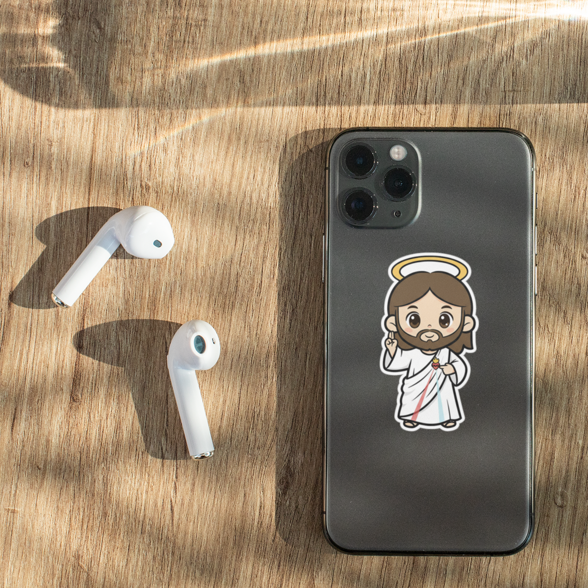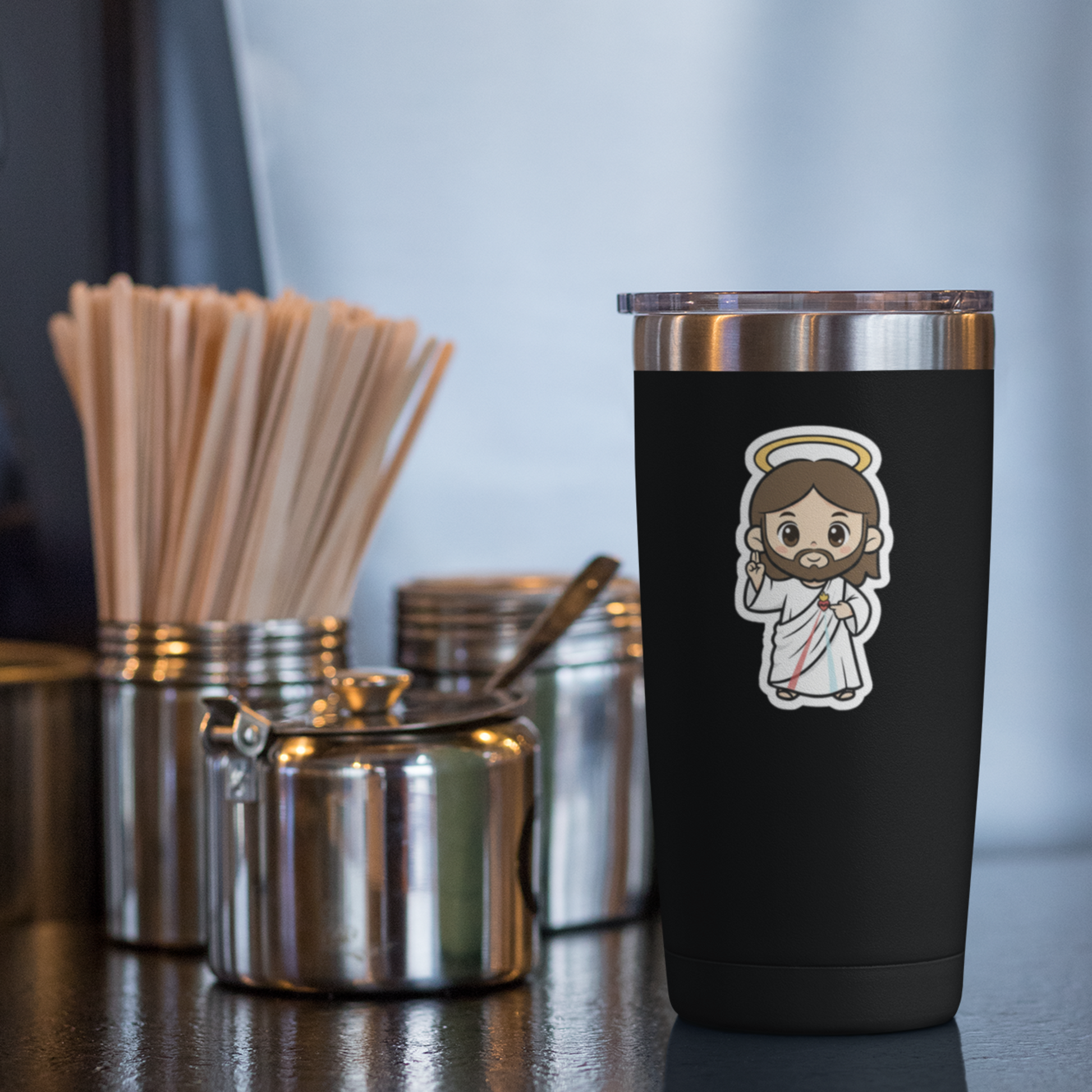 Perfect for decorating laptops, phone cases, journals, water tumblers, or your favorite travel mug, this durable vinyl sticker adds a cheerful touch of devotion anywhere you place it. Buy a few for you—and a few for your friends. It’s a great way to share faith with a smile.