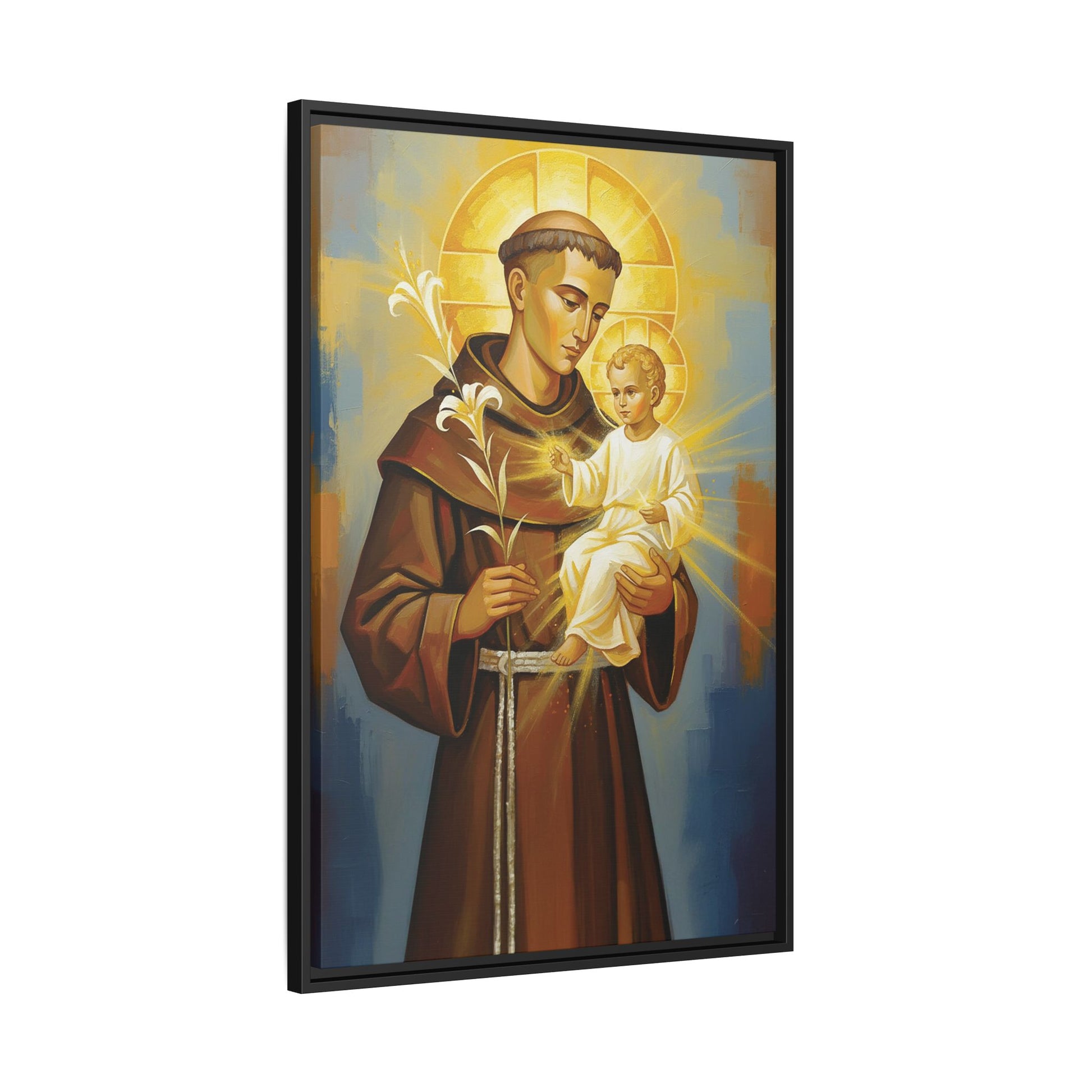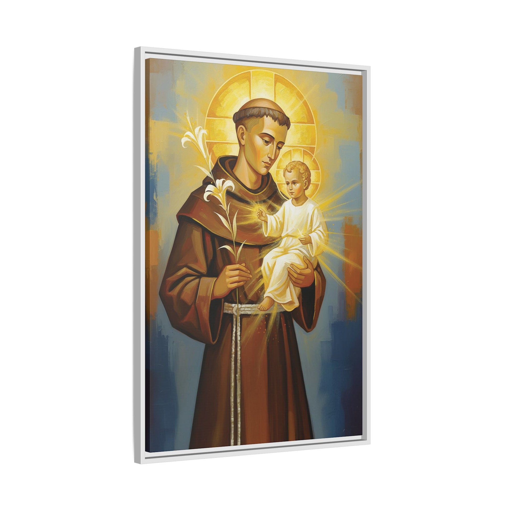 Add this elegant Framed Canvas of St. Anthony with the Child Jesus to your home or gift it as a timeless reminder of faith, purity, and divine love.