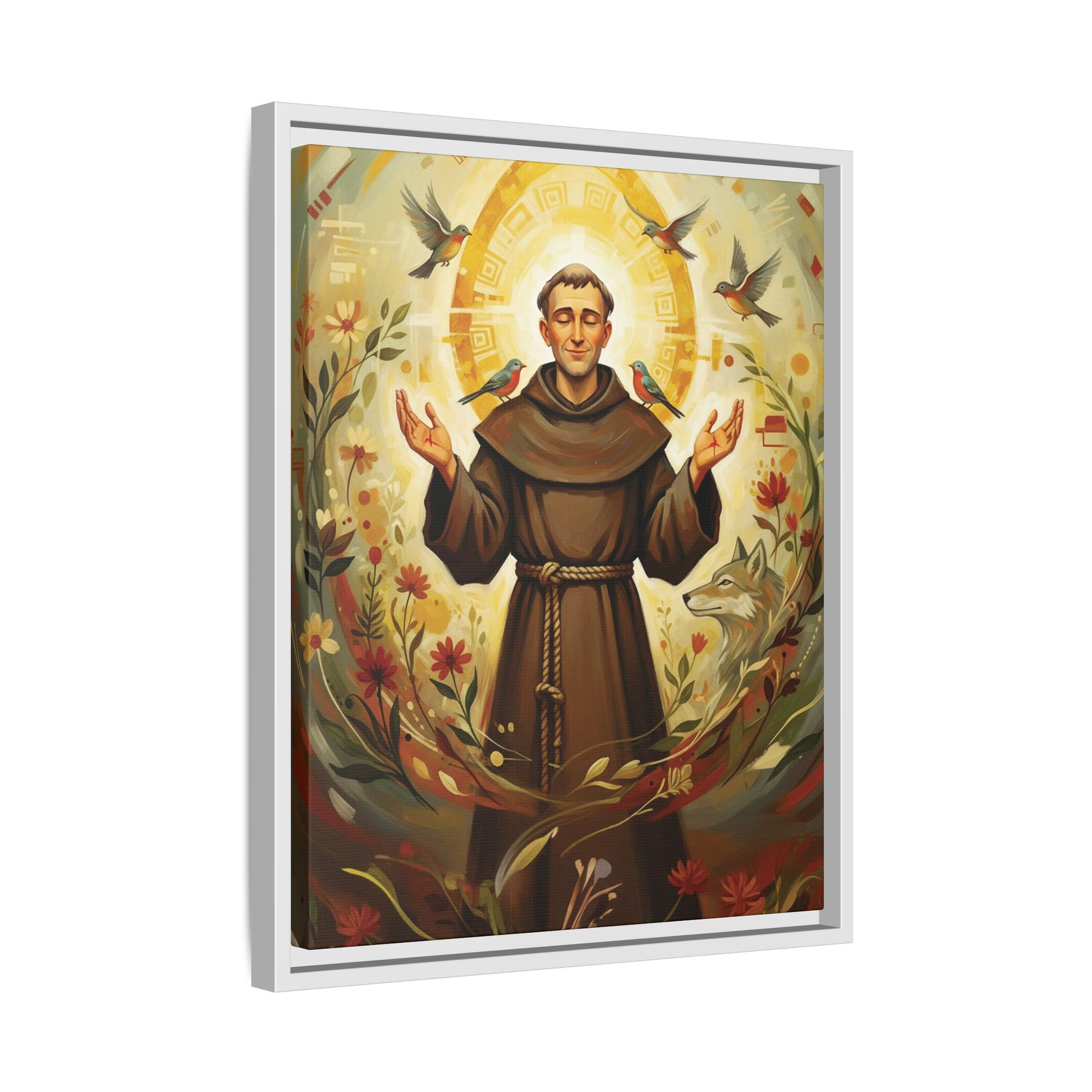 Add this elegant Framed Canvas of St. Francis of Assisi to your home or gift it as a reminder of peace, simplicity, and the beauty of creation.