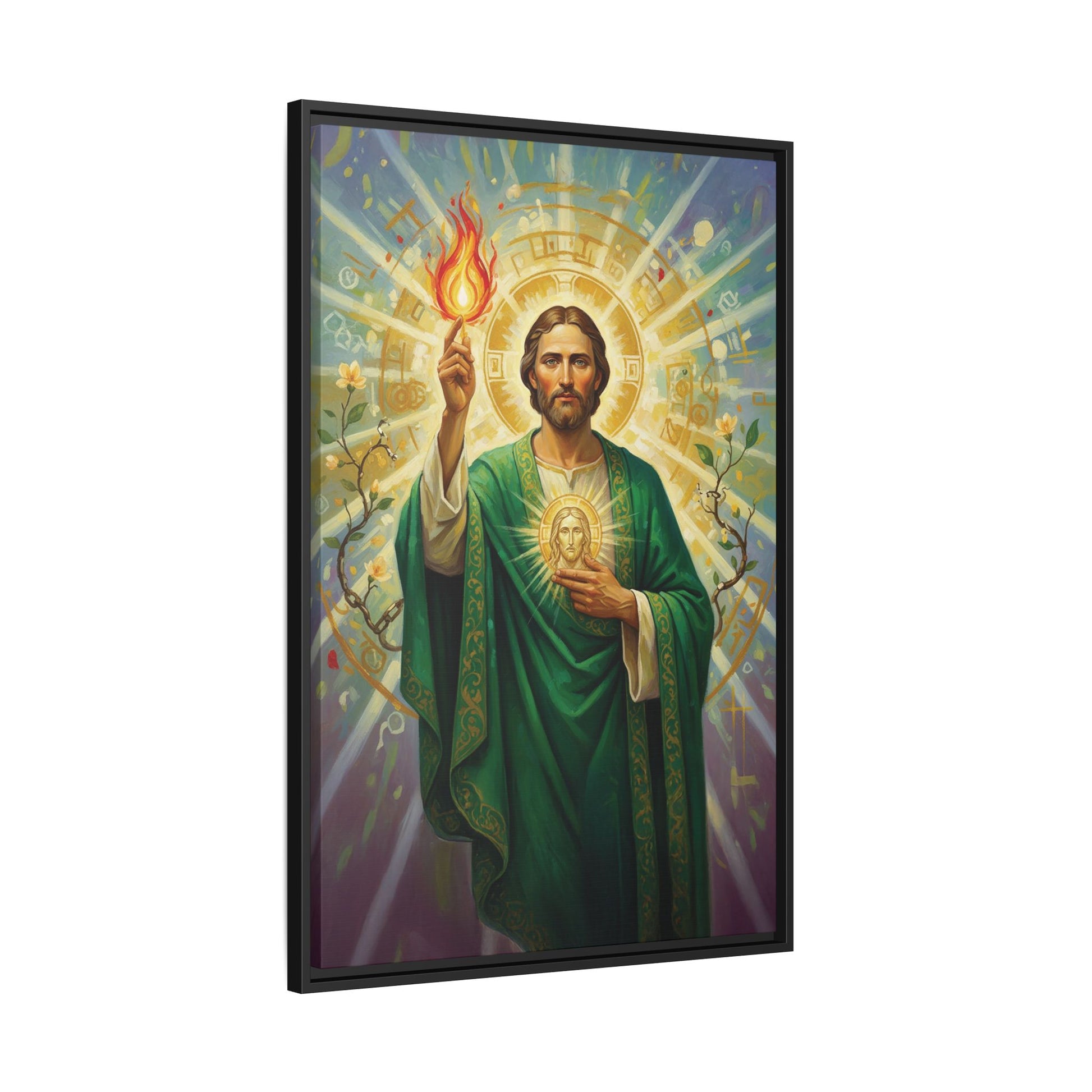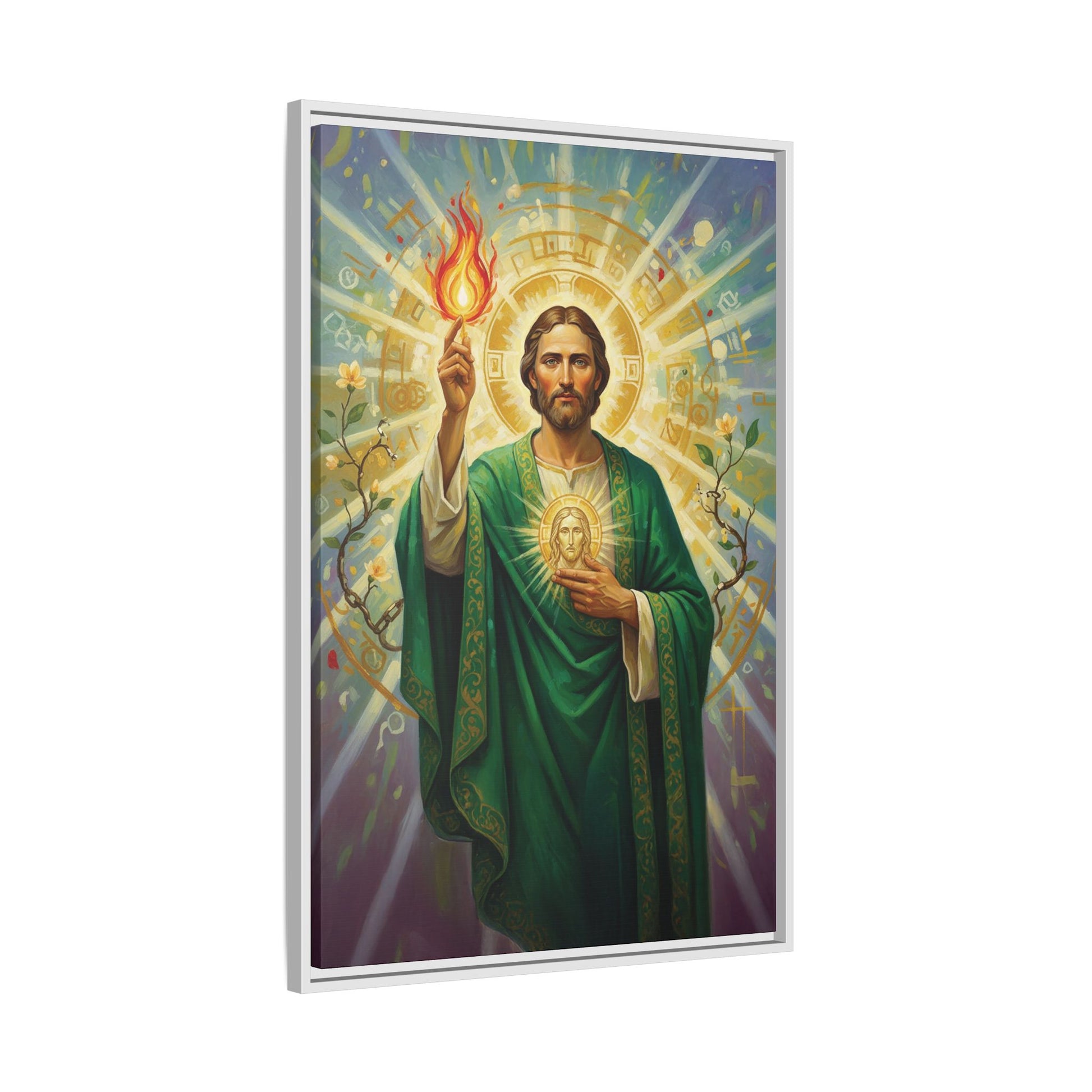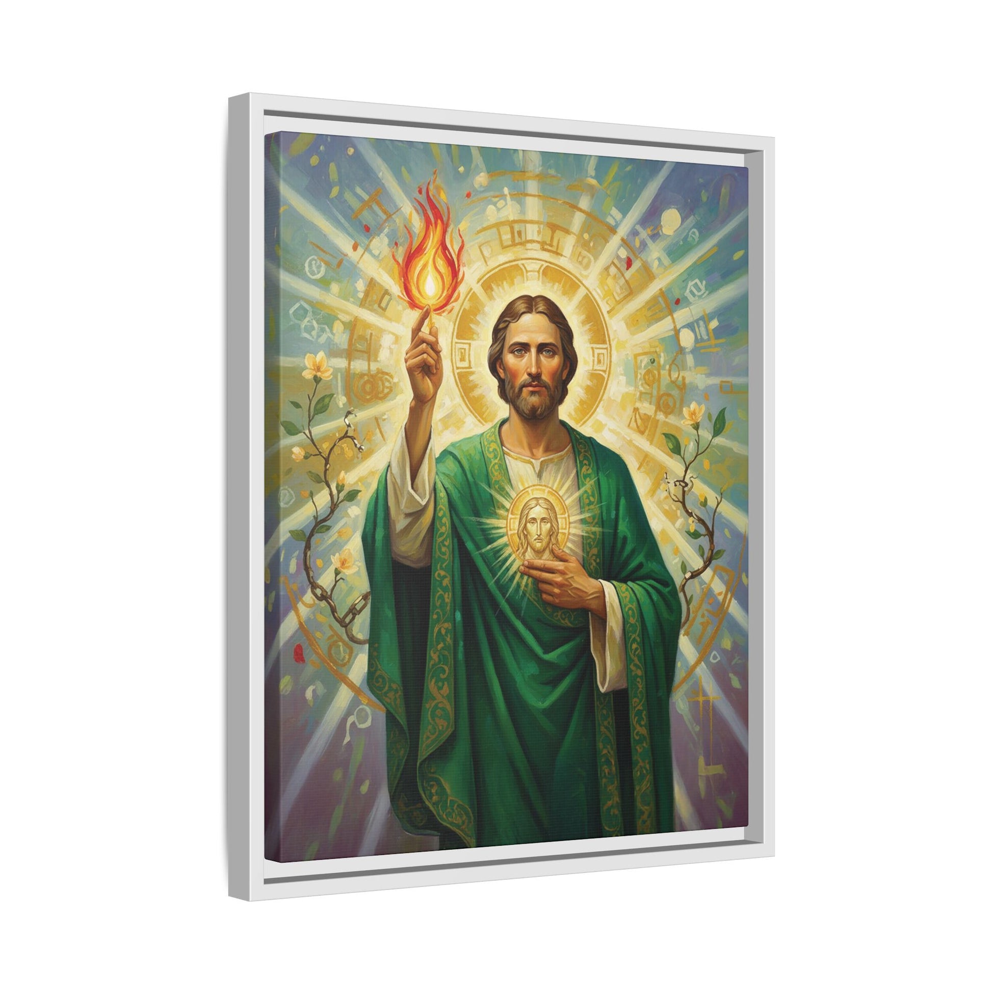 Add this elegant Framed Canvas of St. Jude Thaddeus to your home or gift it as a powerful reminder of hope, healing, and divine light in difficult times.