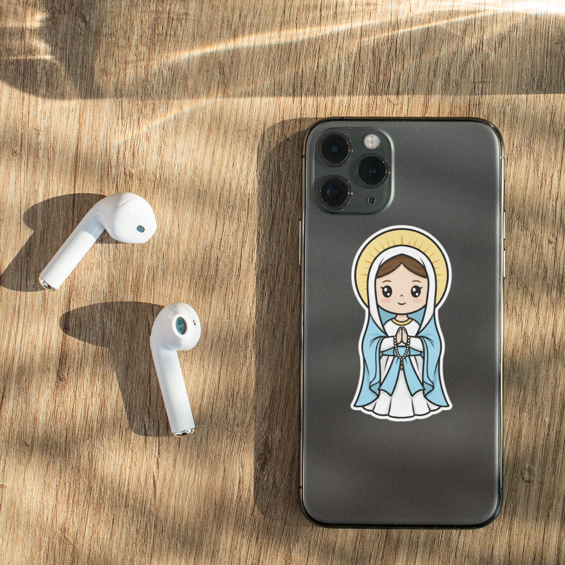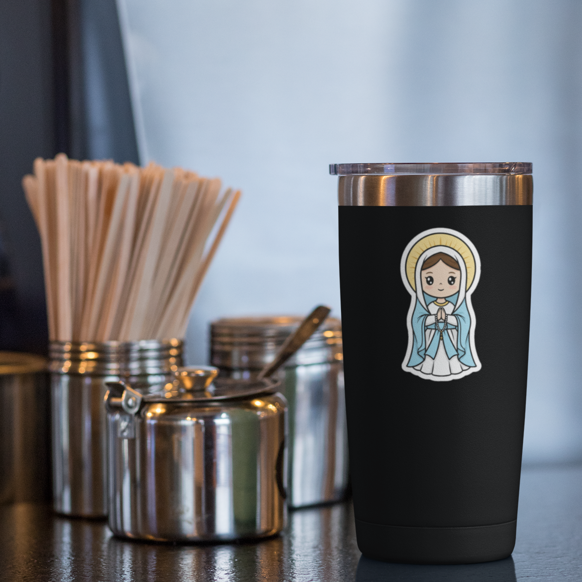 Perfect for decorating laptops, phone cases, journals, water tumblers, or your favorite travel mug, this durable vinyl sticker adds a cheerful touch of devotion anywhere you place it. Buy a few for you—and a few for your friends. It’s a great way to share faith with a smile.