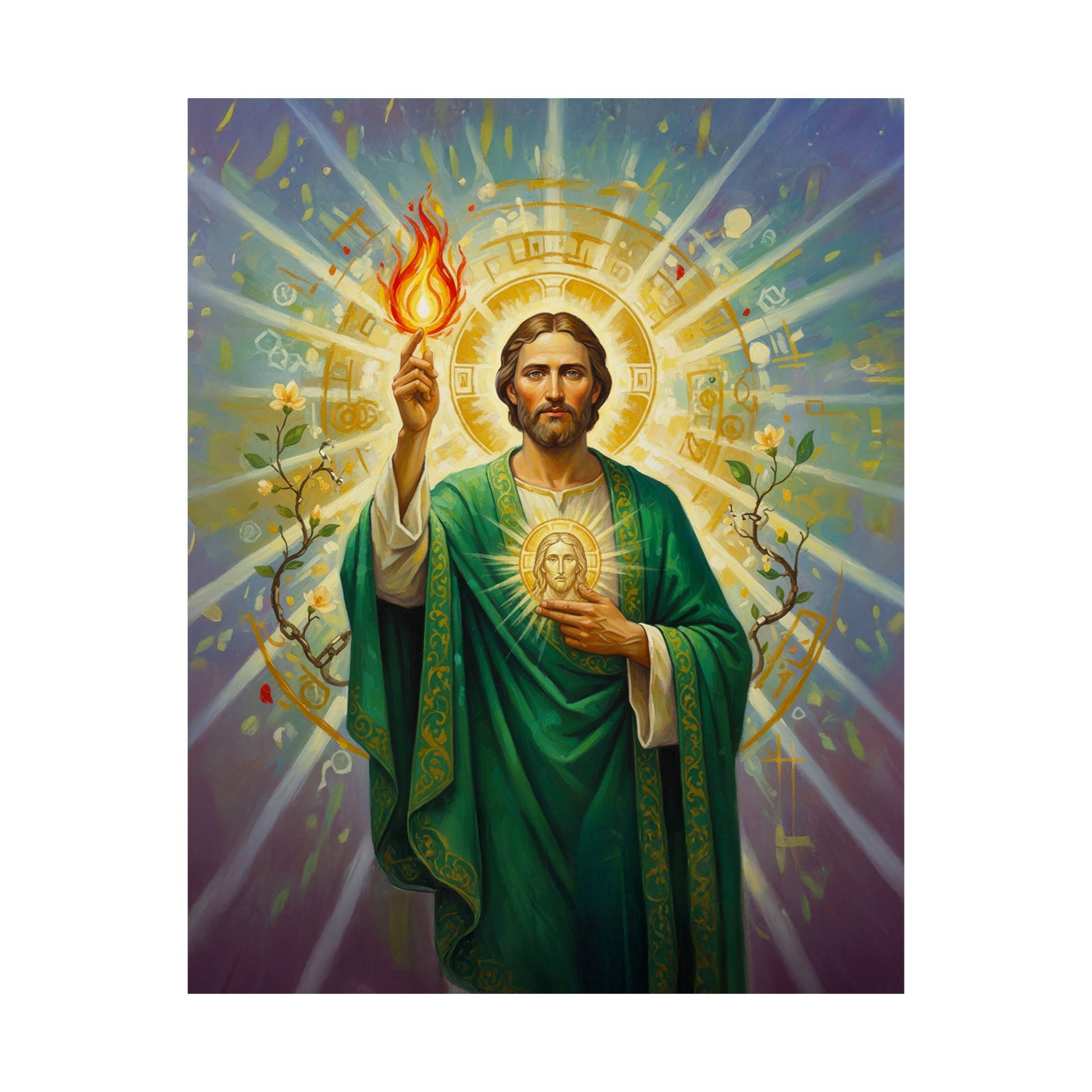 Bring a message of hope and strength into your home with this luminous matte poster of St. Jude Thaddeus, the patron saint of hopeless causes and desperate situations. Revered as a powerful intercessor in times of trial, St. Jude’s enduring witness encourages the faithful to place their trust in God’s unfailing mercy.