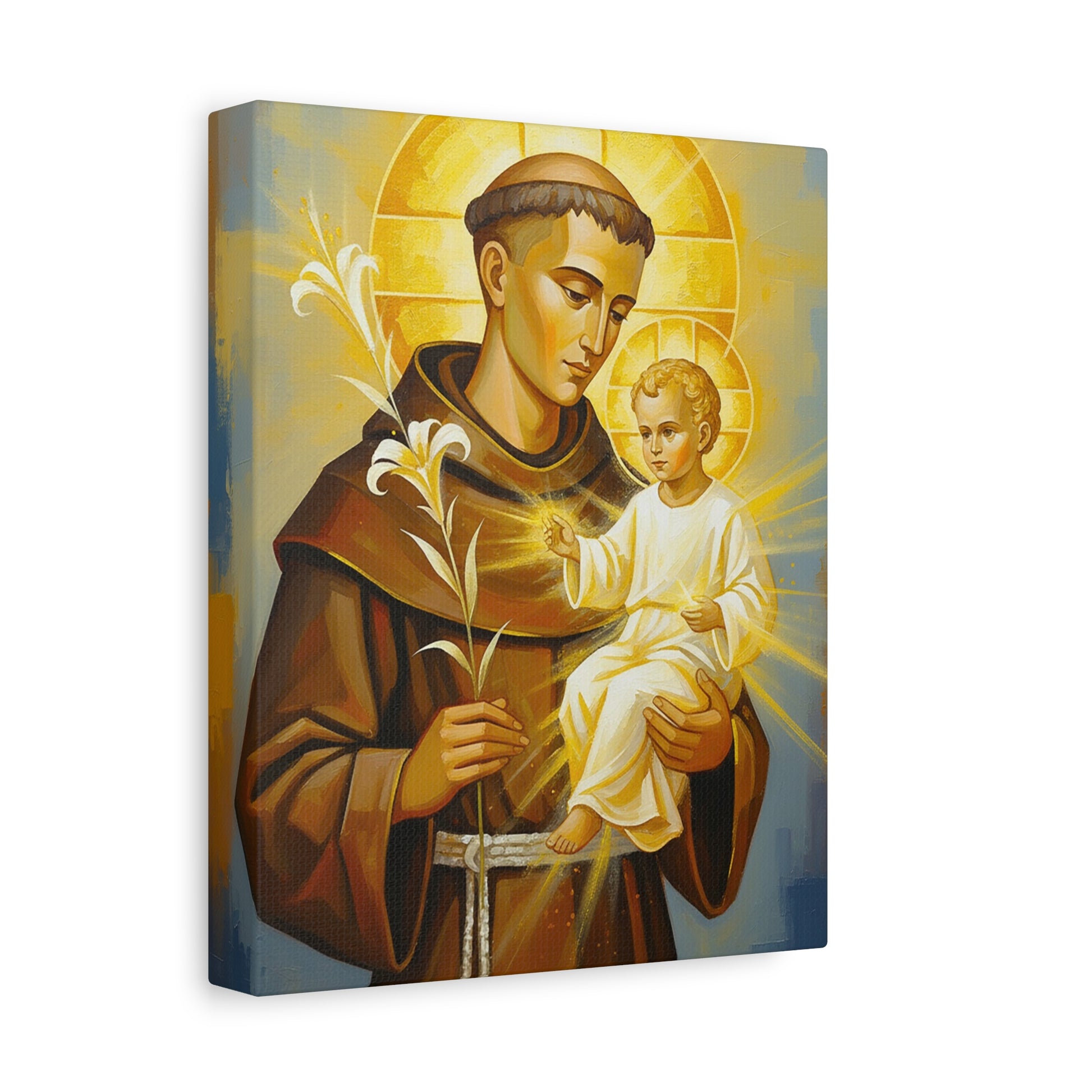 Printed on a premium matte canvas, this luminous piece is perfect for prayer corners, chapels, or as an inspiring centerpiece in any home. It is a meaningful reminder of St. Anthony’s intercession, especially for those seeking peace, guidance, or lost things.